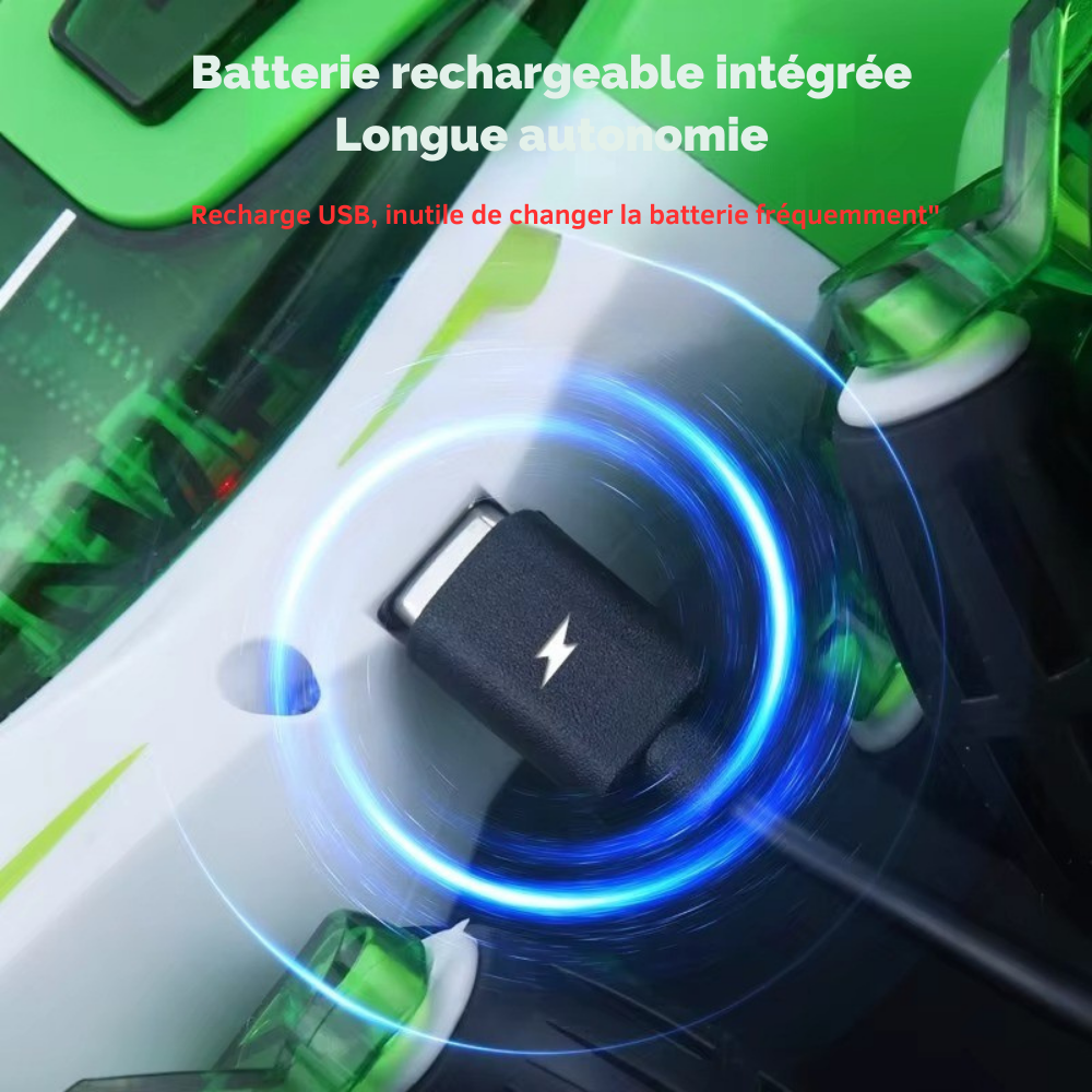Découvrez l’une des voitures télécommandées les plus impressionnantes du moment : drift à 360°, effet spray réaliste, roues omnidirectionnelles, LED lumineuses, batterie rechargeable longue durée et double commande (manette + bracelet gestuel).